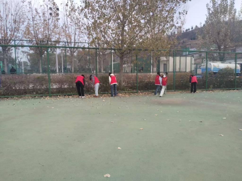 活动前,校学生会志愿者结合秋日操场特点,划分“跑道清扫区、看台整治区、绿植养护区”三大区域,发放扫帚、高压喷水壶、分类垃圾袋、手套等工具,讲解落叶枯枝清理技巧与绿植养护注意事项。活动中,志愿者们各司其职:跑道组用扫帚清扫散落的树叶与灰尘,高压喷水壶冲洗顽固污渍;看台组细致擦拭座椅灰尘,捡拾缝隙中的零食碎屑;绿植养护组修剪操场周边灌木枯枝,清理绿化带内的白色纸屑垃圾。部分志愿者还制作“爱护环境·文明运动”提示牌,放置在操场显眼位置,过往师生纷纷为志愿者们的行动点赞。